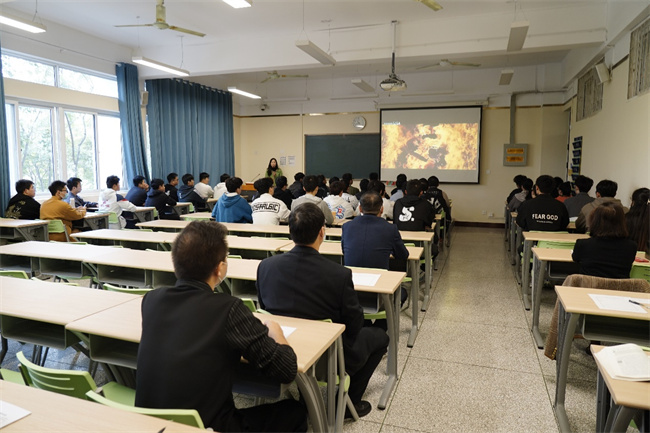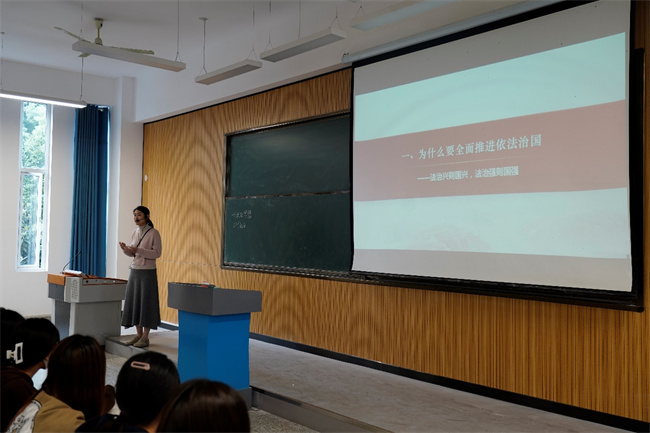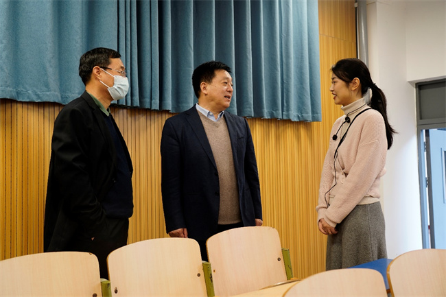 温道军听取了马克思主义学院杨子樱教师的现场教学,杨子樱通过引用生动详实的案例和视频讲述《全面推进依法治国》,使学生清晰了解到从法“制”到法“治”的转变,营造了内容丰富、轻松活跃的课堂教学氛围。课后,温道军与授课教师进行深入交流,对教师认真的教学态度、丰富的教学内容、多样的教学手段表示肯定。他强调,要深入学习贯彻党的二十大报告中关于教育、科技、人才方面的论述,紧紧围绕“立德树人”根本任务,坚持“八个相统一”,不断创新教学方法,提升学生的学习积极性和课堂活跃度,使思政课真正成为学生喜闻乐见、终身受益的课程。