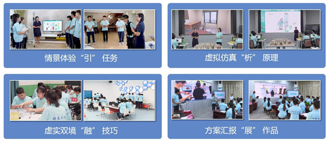 典型案例的入选,是学校大力推进“双高校”建设的工作亮点,也是学校探索高职复合型BIM人才“四元融通”综合育人模式的创新实践。BIM简称建筑信息模型,是建筑的数字化模型集成应用,具有全程可视、在线协同、虚实结合等优点,2003年开始在全国应用并引发建筑产业革命,2019年建筑信息模型技术员成为首批新职业,BIM证书成为首个“1+X”项目。国家大力推进建筑产业数字化升级,既需要大量传统建筑岗位应用BIM实现技术升级(+BIM),又需要大批的专门BIM岗位增值赋能(BIM+),着力培养一批“基础扎实、一专多能、素质优良”的复合型BIM人才,迫在眉睫。学校依托建筑工程施工全过程虚拟仿真实训基地,赋能建筑工程技术专业群培养高质量复合型BIM人才,完善“岗课赛证”综合育人机制,开发模块化、系统化的实训课程体系。以人为本能力建构,岗课赛证“四元融通”,构建“三层三挡、四元融通”模块化课程体系,开发“能力重塑、四元融通”模块化课程,实施“虚实结合、四元融通”模块化教学。