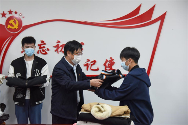 为应对校园疫情防控与冬季寒流叠加的严峻形势,解决学生御寒衣物紧缺现状,学校及时发出倡议,动员广大教职员工开展捐衣活动,为学生送上河职温暖。11月10日下午,河南职业技术学院校党委书记李桂贞、校长梅乐堂分别为所联系学院学生捐赠御寒衣被,并了解学生学习生活情况。校党委副书记、纪委书记田华,副校长王皓及相关部门负责同志陪同参加。