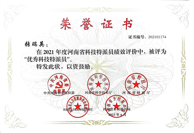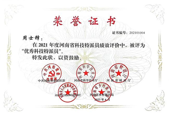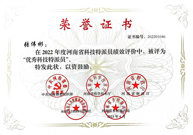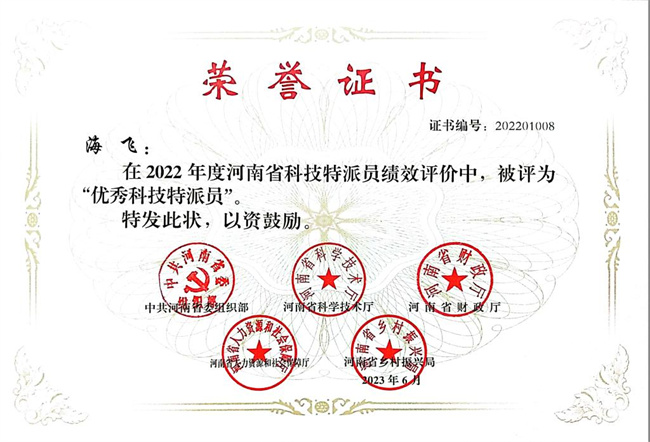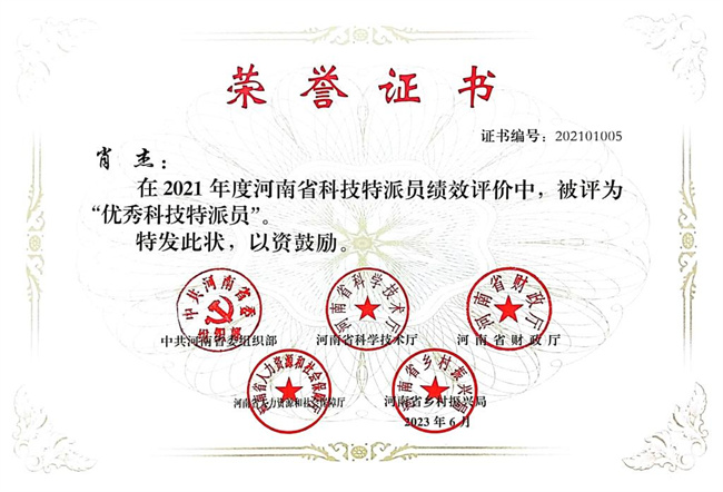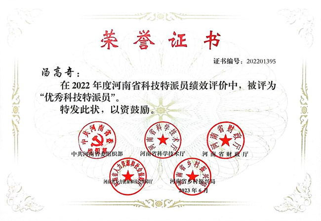 近日,中共河南省委组织部、河南省科学技术厅、河南省财政厅、河南省人力资源和社会保障厅、河南省乡村振兴局联合下达了《关于公布2021、2022年度河南省科技特派员绩效评价结果的通知》(豫科〔2023〕67号)文件,河南农业职业学院周士锋、肖杰、张守仕、张瑞英、汤高奇、海飞、张伟彬7位科技专家被评为河南省优秀科技特派员。