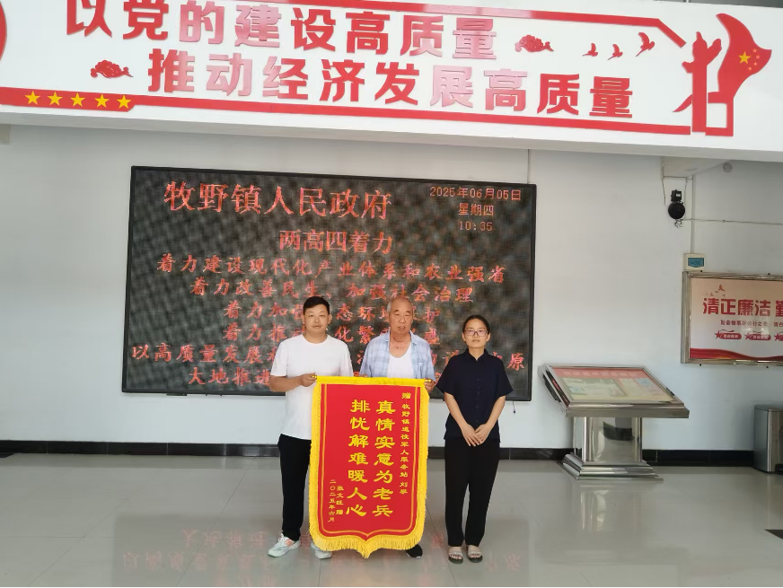 如今,在牧野镇退役军人服务站的岗位上,刘攀将“为老兵办实事、解难题”作为工作核心,用心用情为辖区退役军人提供贴心服务。今年,村民韩全福、张文旺分别送来“情系老兵,真诚服务”“真情实意为老兵,排忧解难暖人心”的锦旗,这两面锦旗不仅是群众对他的认可,更是广大退役军人对这位“战友”的信任。