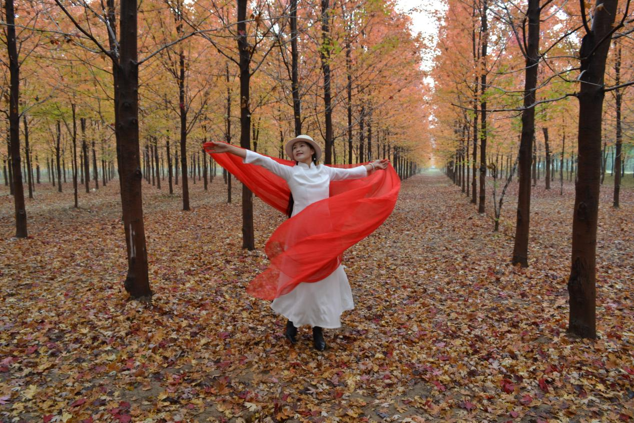 影视家协会的王国胜则架起无人机,俯瞰枫林,如红色锦缎,绘就故道的壮丽,不禁感慨道:“以前拍家乡的景色都是站在地面仰拍,自从用上航拍器,才知道咱民权还有这么大气磅礴的景致!俯瞰申甘林带的枫叶,像铺了层红地毯,跟蜿蜒的故道交织在一起,这哪是平时站在树下能瞅见的?咱县这几年搞生态建设可不是白干的,那成片的绿、满眼的红,都是实打实的成果,拍出来谁看了不夸一句‘民权真中’!”