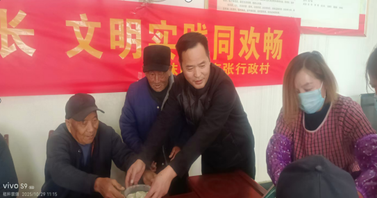 “今天是九九重阳节,把大家请来吃饺子,感谢你们多年来对村委工作的关心和支持,真心祝福大家健康长寿、家庭幸福!”张伟发自肺腑的讲话,老人们报以热烈的掌声。