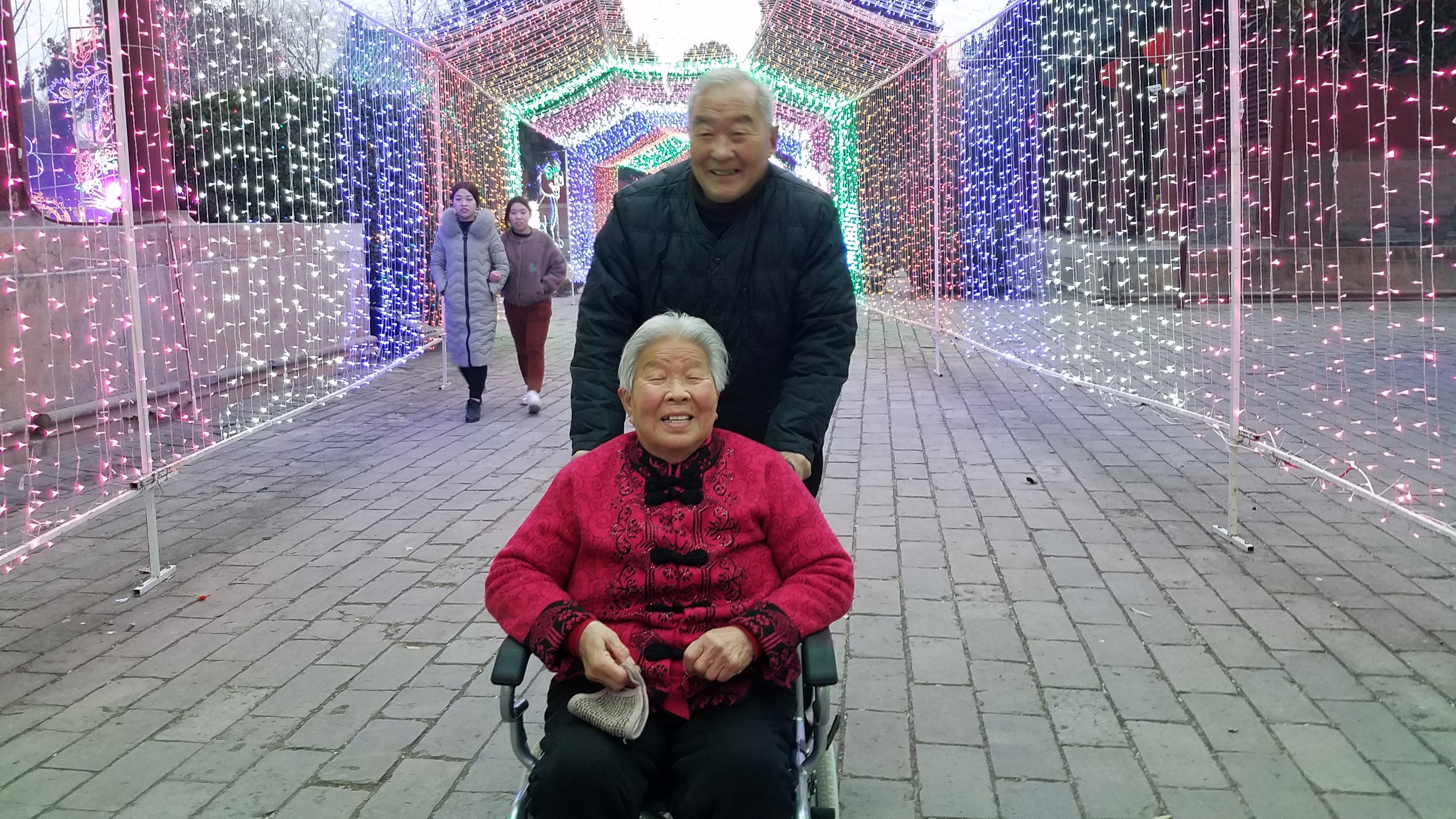 发布时间:2018-02-28 浏览: 次 作者:编辑 本报讯 2月25日,武陟县嘉应观为期一个月的灯展会上,一对年过八旬的老人成为游客中最耀眼的一道靓丽风景线。他们恩爱、幸福,携手走过了60多个春秋。灯展会上,老人推着妻子,两人笑容满面,他们灿烂而幸福的微笑令不少游客投来羡慕的眼光。(魏新平)