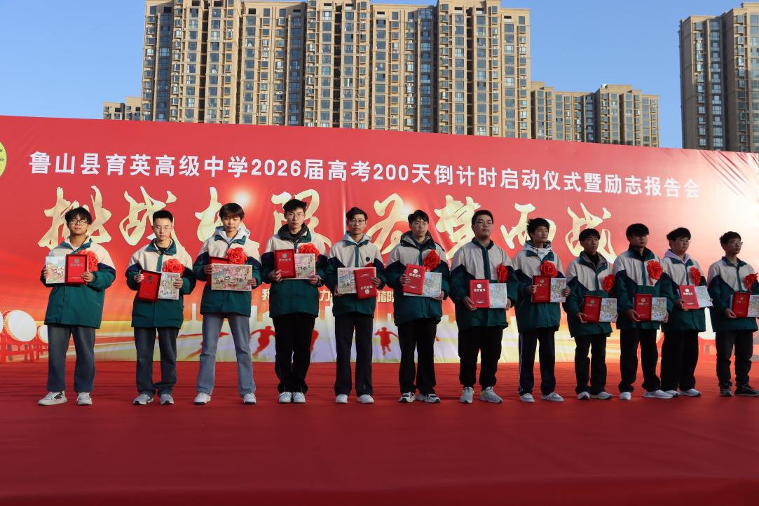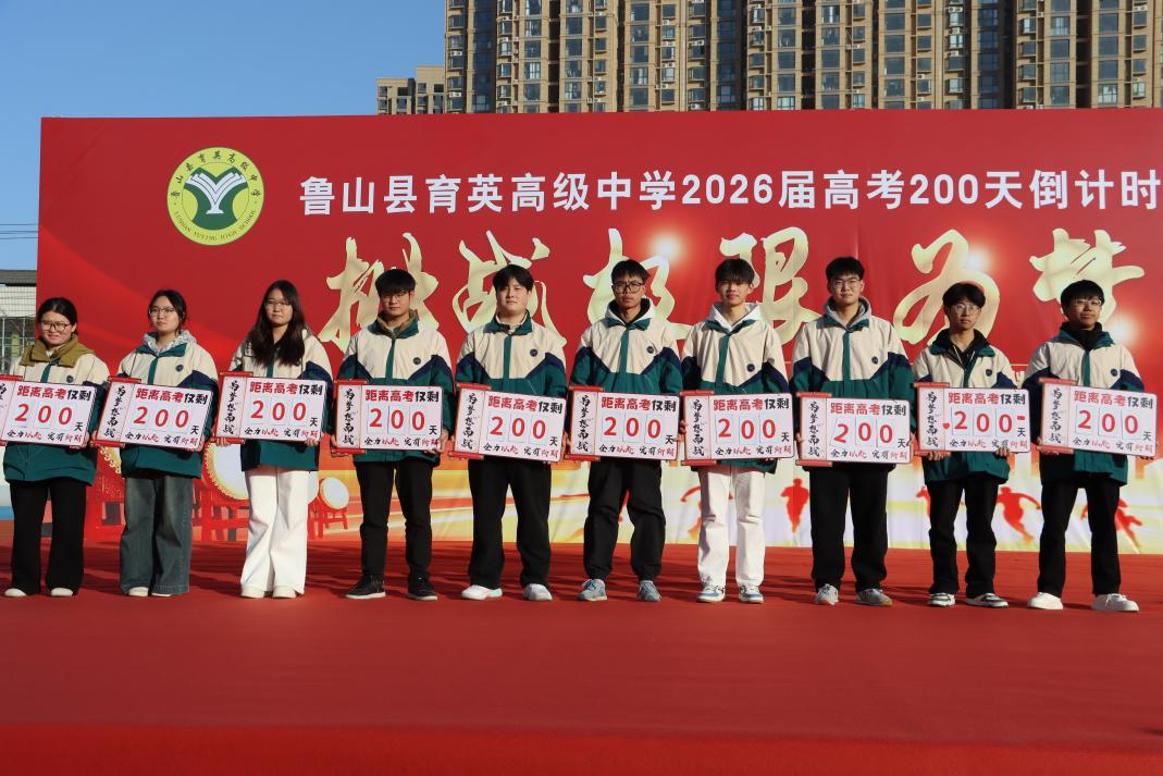 冬风蓄势,青春正好;战鼓催征,誓言震霄。11月25日,鲁山育英高中全体学生齐聚运动场,隆重举行“挑战极限 为梦而战”2026届高考二百日倒计时启动仪式及励志报告会,为即将到来的高考吹响冲锋号角。 仪式在激昂的鞭炮声和音乐中拉开帷幕,全体师生庄严肃立,奏唱国歌,以饱满的热情表达对祖国的热爱和对高考的决心。