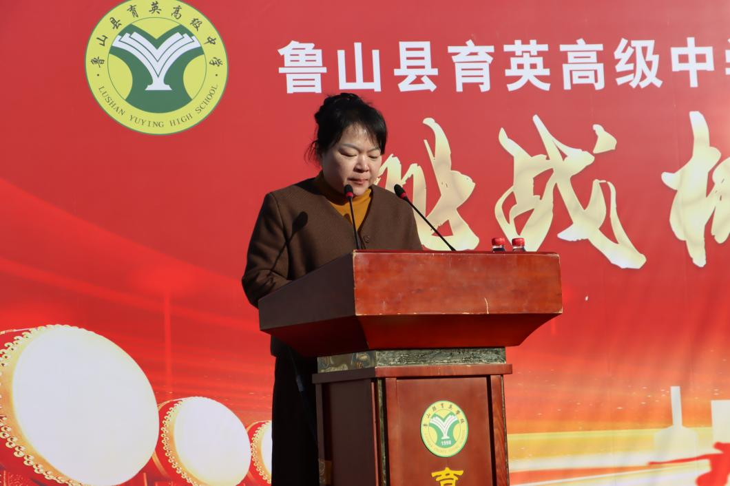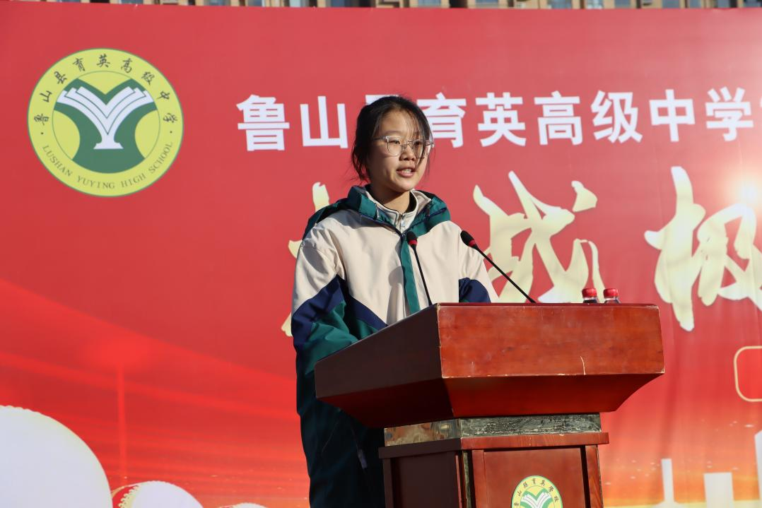 学生代表上台发言,表达了全体同学面对高考的坚定信念和青春誓言。他们心中有火,眼中有光,展现出了育英学子的蓬勃朝气和拼搏精神。 会上播放了学长学姐们的寄语,这些已经从育英校园走向理想大学的学子们,为学弟学妹们送来了祝福与经验,成为同学们前行路上的灯塔。 随后,学校领导在讲话中对全体2026届学子提出三点希望:一是要有“志存高远”的格局,将个人梦想与国家发展、民族复兴相结合,以强烈的责任感驱动前行;二是要有“脚踏实地”的作风,珍惜每一分每一秒,把目标分解到日常,夯实基础、补齐短板;三是要有“迎难而上”的勇气,以乐观心态面对挫折与困难,把挑战当作成长的阶梯,永不言弃、永不退缩。